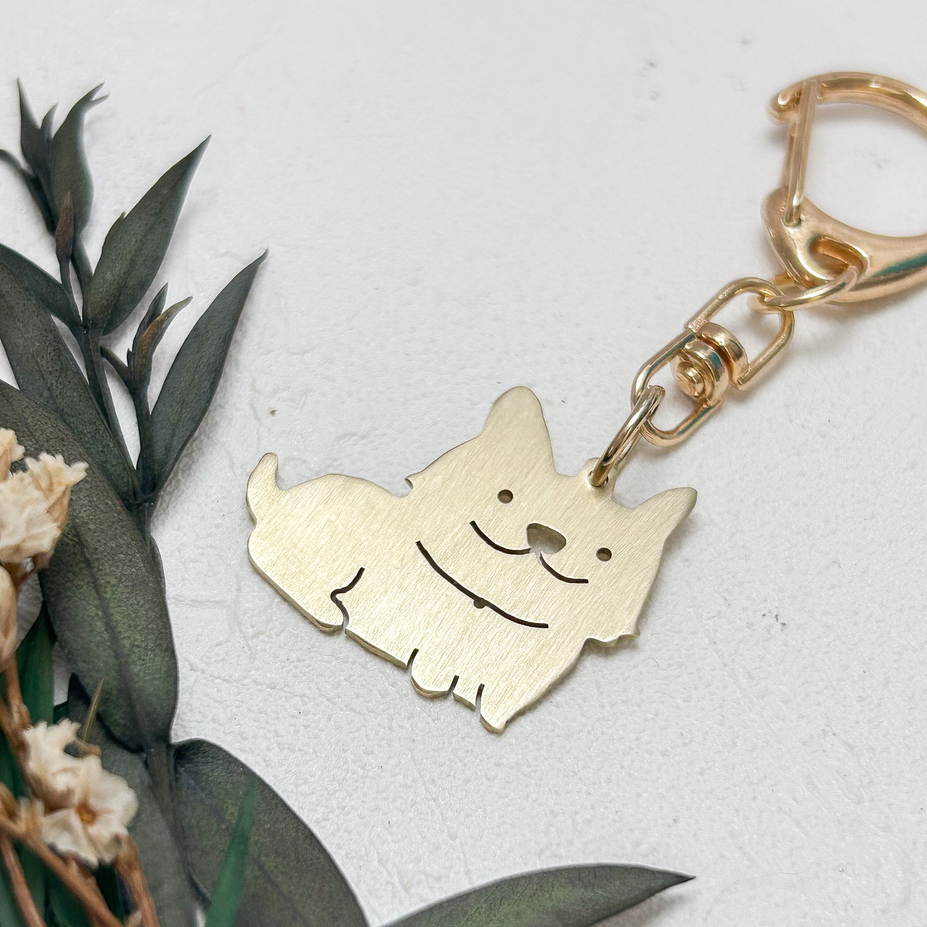 モフッと座るわんちゃんのキーホルダー。